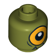 - Nom : Minifig Head Dual Sided Alien with Lower Fangs, Single Orange Eye Open / Eye Half Closed Print [Blocked Open Stud]