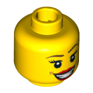 - Nom : Minifig Head Female with Large Red Lips, Open Mouth Smile with Teeth, Brown Eyebrows, Thin Eyelashes and White Pupils Print [Blocked Open Stud]