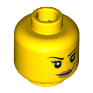 - Nom : Minifig Head Female with Brown Eyebrows, Eyelashes, Brown Lips, Open Smile Print [Blocked Open Stud]