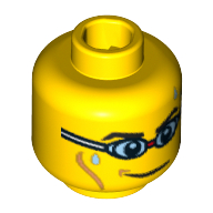 - Nom : Minifig Head Dual Sided Mad Scientist Glasses, Teeth, Sideburns / No Sideburns Print [Blocked Open Stud]