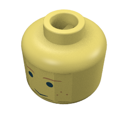 - Nom : Minifig Head Brown Eyebrows, Cheek Lines, Open Mouth on One Side and Drops of Sweat Print [Blocked Open Stud]