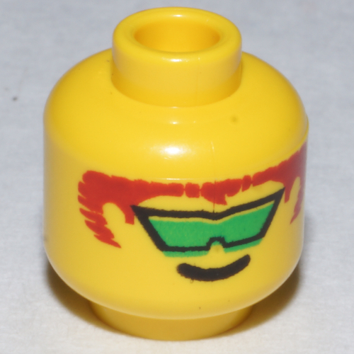 - Nom : Minifig Head Glasses with Green Angled Sunglasses and Brown Hair Print [Blocked Open Stud]