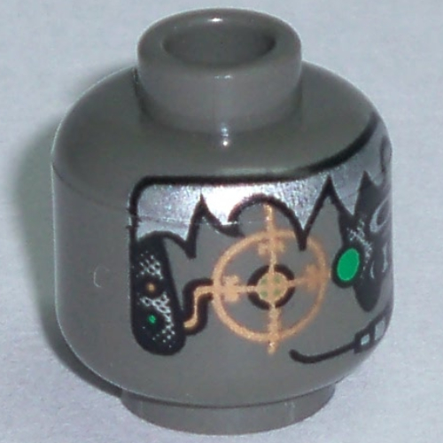 - Nom : Minifig Head with Silver Hair and Copper Eyepiece Print alien,insectoids,borg,headset [Blocked Open Stud]