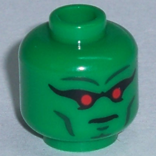 - Nom : Minifig Head Alien with Red Eyes on Black, Dark Bluish Gray Eyebrows Print (Martian Manhunter) [Hollow Stud]