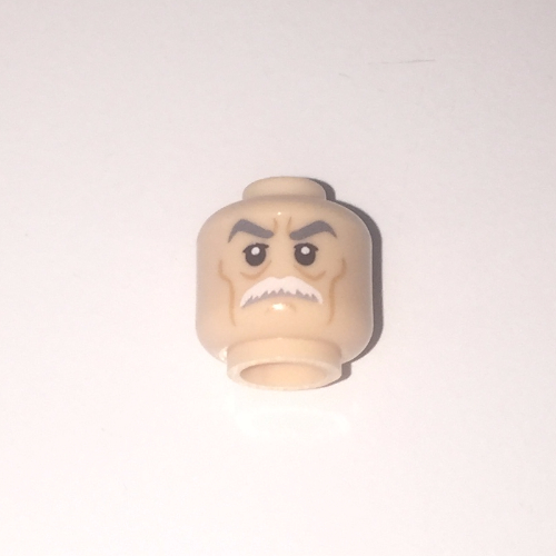 - Nom : Minifig Head Bushy White and Gray Eyebrows, Crow's Feet and Crooked Smile Print [Hollow Stud]