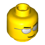 - Nom : Minifig Head Glasses with Silver Sunglasses, Eyebrows and Thin Grin Print [Hollow Stud]