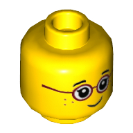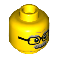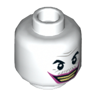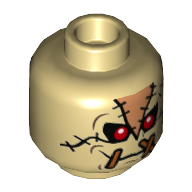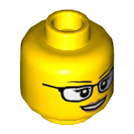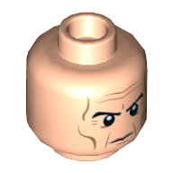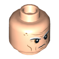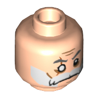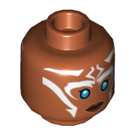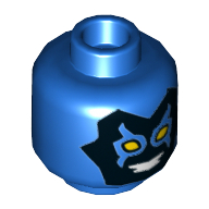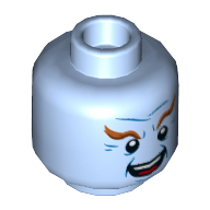 - Nom : Minifig Head with Hollow Stud - Dark Orange Eyebrows - Black Eyes - Blue Wrinkles / Facial Lines - Open Mouth Smile with Teeth and Tongue print (Mr. Freeze) - (also known as Recessed Solid Stud)