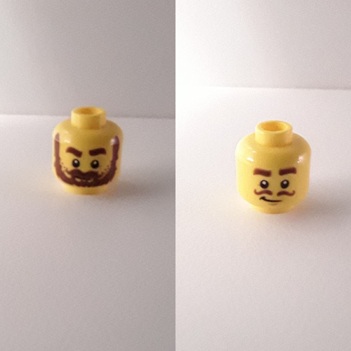- Nom : Minifig Head with Hollow Stud and Dual Side Print - Male White Blind Eyes - Dark Brown Eyebrows and Beard