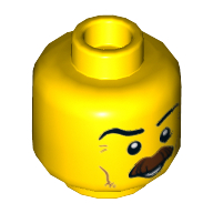 - Nom : Minifig Head with Hollow Stud - Forehead and Cheek Lines - Dark Bluish Gray Eyebrows and Mustache - Gold Eyeglasses below Eyes Print - (Recessed Solid Stud)