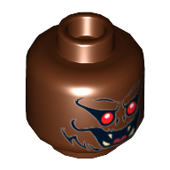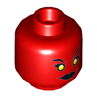 - Nom : Minifig Head with Hollow Stud and Dual Side Alien Print - Red Eyes, Dark Blue Eyebrows and Blue Cheek Lines