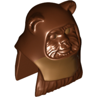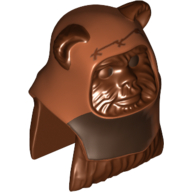 - Nom : Minifig Head Modified Ewok with Dark Orange Hood with Reddish Brown Stitching Print