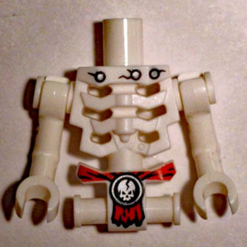 - Nom : Torso Skeleton, Angular Rib Cage with Black Holes and Cracks and Red Loincloth with Cracked White Skull Pattern