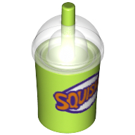 - Nom : Minifig Dome Lid Cup and Straw with Dark Purple and Orange 'SQUISHEE' Print