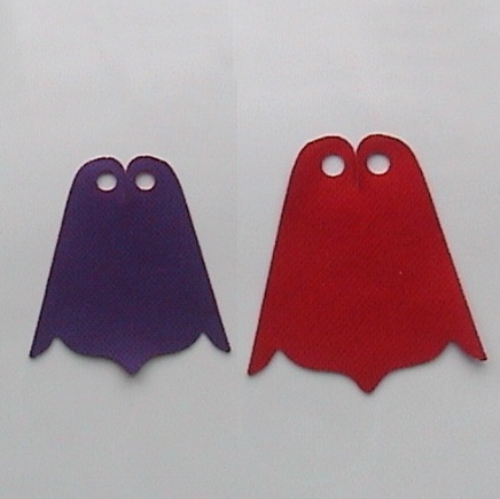 - Nom : Minifig Cape Cloth - Reversible Colors Red and Dark Purple - Long with 2 Top Holes and Points at Bottom