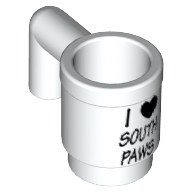 - Nom : Minifig Utensil Cup with Black 'I' Heart 'SOUTH PAWS' Print