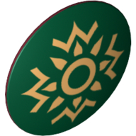 - Nom : Minifig Shield Round Bowed with Dark Green and Gold Rohan Print