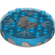 - Nom : Turntable 6 x 6 Round Pearl Dark Gray Base Serrated with Trans-Medium Blue Top with Spiral Stars Print (Ninjago Spinner)
