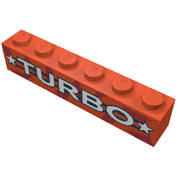 - Nom : Brick 1 x 6 with Yellow 'TURBO' on Blue Background and Black Spots Print