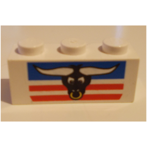 - Nom : Brick 1 x 3 with Bull's Head, Blue and Red Stripes Print