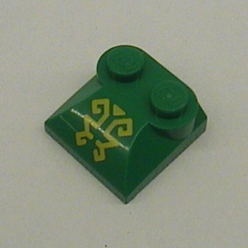 - Nom : Brick Curved 2 x 2 x 2/3 Two Studs, Curved Slope End with Ornate Yellow Lines Print