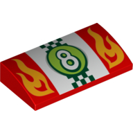 - Nom : Slope Curved 2 x 4 x 2/3 No Studs [No Bottom Tubes] with Number 8 and Stylised Flames Print
