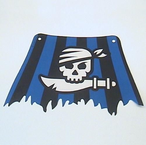- Nom : Cloth Sail 27 x 18 with Black and Blue Stripes, Skull and Cutlass Print, Tatters