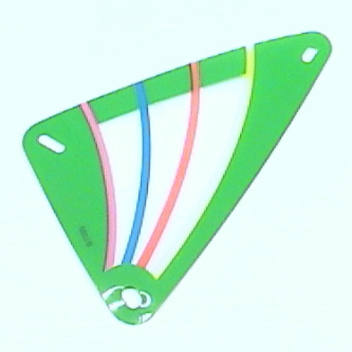 - Nom : Plastic Triangle 9 x 15 Sail Green with Blue, Pink and Yellow Stripes Print [5847]