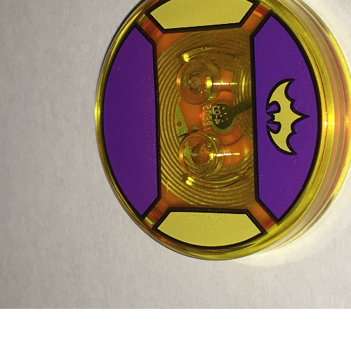 - Nom : Dimensions Stand/Toy Tag 4 x 4 x 2/3 with 2 Studs - Batgirl #71 with Batman Logo on Dark Purple Background Print