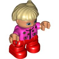 - Nom : Duplo Figure Lego Ville, Female, Medium Blue Legs, Red Jacket with Zipper and Pockets, Reddish Brown Ponytail Hair